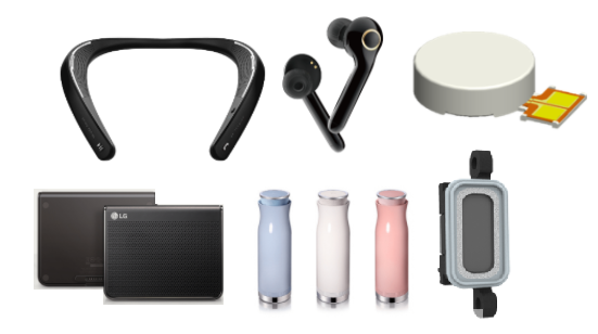 먼저 전자기기(스피커) 사업부를 말씀드리면, 스피커 관련 부품으로 위 그림처럼 Wireless스피커, Wireless이어셋, Smart보청기, Micro Speaker, Dynamic Receiver, Vibration Motor, Module Ass, 블루투스 스피커를 제조하는데 LG와 삼성의 이름을 달고, ODM이나 부품을 납입합니다.