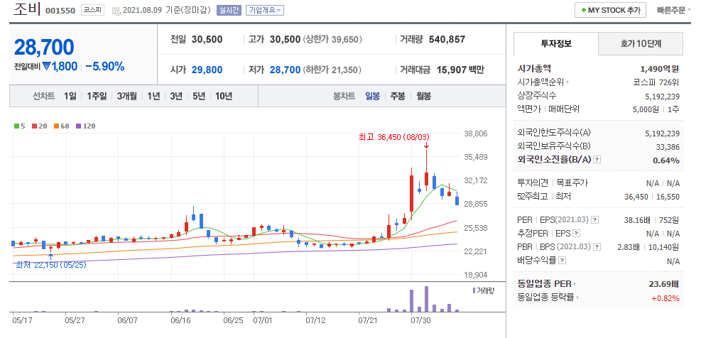 조비는 비료전문메이커입니다. 친환경적인 맞춤 비료 및 완효성 비료 등을 생산하는데요. 사실 '경농(002100)'이라는 주식과 남북경협 비료관련주로 묶여서 대장을 오며가며 하지만, 조비가 좀 더 주가가 탄력적이며, 흔히 이야기하는 개잡주 무빙을 보여주기에, 테마주로 안성맞춤이죠.
