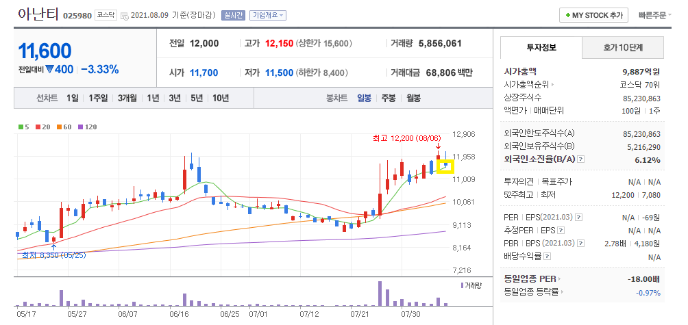 아난티는 골프장과 레저사업을 영위하는 코스닥 상장 회사인데요.