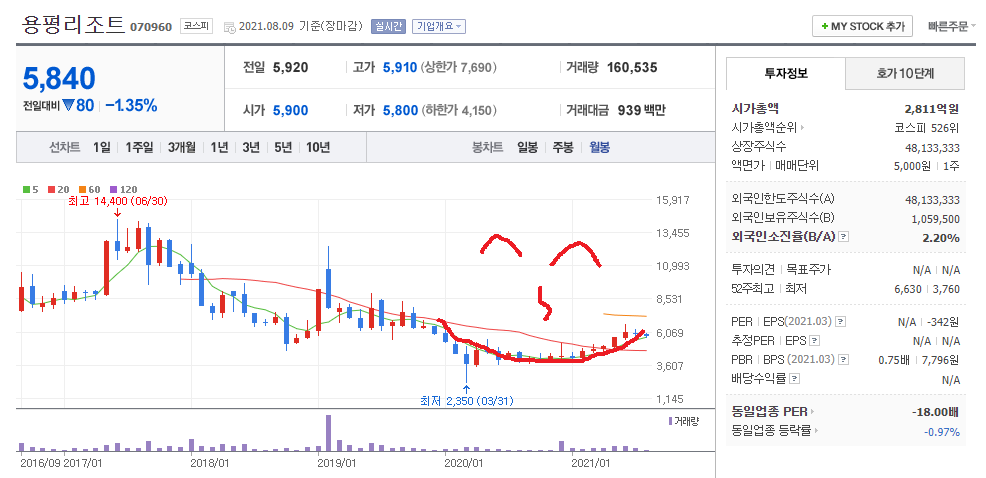 마지막으로 용평리조트입니다. 흔히 '용가리'라고 불리며 놀림을 받던 주식입니다.