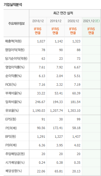 일단 올해까지는 예상치로는 2개년 연속 적자이지만, 영업이익으로 인한 관리종목지정이나 상장폐지와는 거리가 매우 머네요. 유보율도 높은 편이라 몇년은 더 버틸 수 있지만, 부채비율이 높은 점은 아쉽습니다. 더군다나 코로나 19의 재확산으로 인해 사회적 거리두기 단계가 줄어들기미가 보이지 않으니 영업이익에서의 적자는 꽤 오래 지속될 듯 싶습니다.